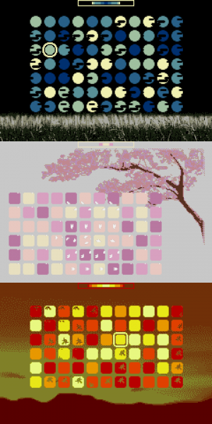 In hindsight, is this great? Probably not. But, I think as an earlier stab at this kind of thing, it helps to capture a decent amount of information. Full disclosure, this is an instance of me not having actually made anything for it in a playable sense - but I do think it's the sort of thing that could be decently fun, with some minor reworks. Back when I was asking around to determine people's thoughts, a couple of people mentioned elements like making the central hole smaller, which would fit well - beyond that, additional elements from puzzle games like a "Lock" tile (preventing the rotation of that ring or the shifting of that column) would lend a lot of additional fun to the concept, and a full release would likely feature basic QoL additions like the option to select your own palettes. Perhaps, to take influence from another bit Generations game, certain palettes can be unlocked to feature different background elements... well, I can fantasise all day about such things.